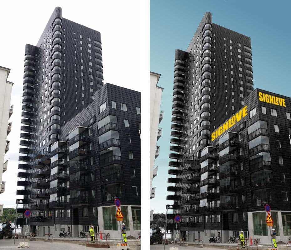 In this tutorial I will show you how I created a new blue sky, enhanced a building with color and light and created a mockup sign which I then applied to it.